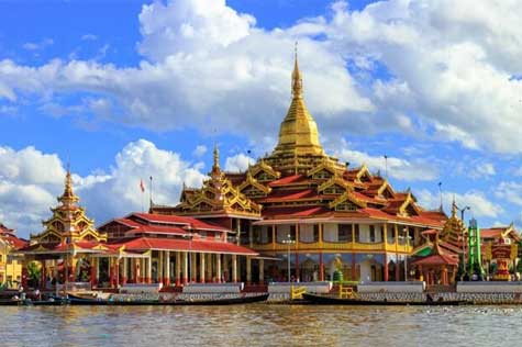 Taking an excursion by boat on the lake, visitors have full sight of the famous leg rowers, typical floating gardens, local methods of fishing, village life, and saw women weaving traditional bags and outfits and especially enjoy the bustling atmosphere of floating markets. The next stop is Phaung Daw Oo Pagoda, one of the most sacred shrines in Myanmar, dating back to the 18th century.