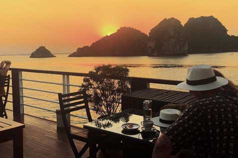 Try to wake up early this morning to enjoy the most beautiful moment on the Bay. Halong Bay is beautiful in every moment, especially at sunrise – the Bay is truly a masterpiece of nature. Nothing can portray the magical beauty as the first rays of morning sunshine down on the crystal-clear sea surface. Take in the fresh moment at the very first sunrays with a Tai Chi class on the top deck.
